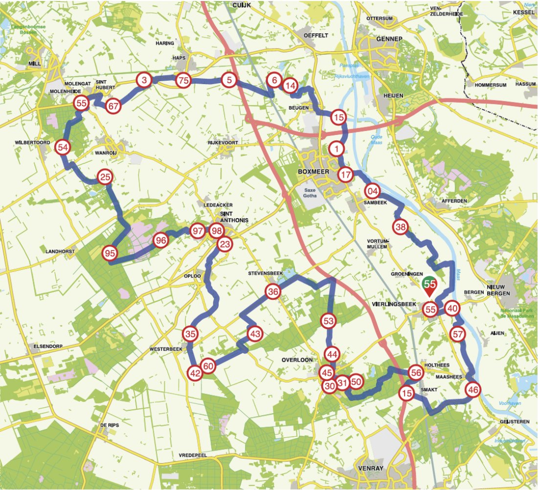 Hij is 80 kilometer lang. Hij is te vinden op route.nl (nummer 2203490) of via de gelijknamige app.