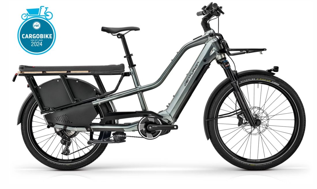 Twee kinderzitjes, grote tassen of een transportbak kunnen op de achterdrager bevestigd worden terwijl zich aan de voorkant van de fiets ook nog een transportrek bevind. Met de 85Nm krachtige Bosch Cargo Line motor en 625Wh grote accu is de Centurion Vario een ideale fiets voor transport of koeriersdiensten, maar ook voor ouders met kleine kinderen of milieubewuste forenzen. Met een prijskaartje van €5.999,-.